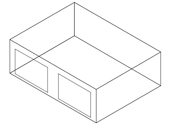 The basic test building is a rectangular single zone (8 m wide × 6 m long × 2.7 m high) with no interior partitions and 12 m² of windows on the south exposure. The building is of lightweight construction with wood siding, insulation, and gypsum board walls; lightweight roof deck with insulation; and timber floor construction. The building has 200 W continuous internal gains (sensible only), 0.5 ACH infiltration, heating setpoint of 20°C, and cooling setpoint of 27°C. This case establishes the baseline for all 600-series comparisons. For further details, refer to Section 7.2.1, ASHRAE Standard 140-2020.
