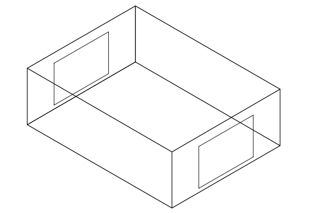 Case 620 is identical to Case 600 except the window orientation has been modified: the south-facing windows are removed and replaced with opaque wall, and 6 m² of window area is added to both the east wall and the west wall (total 12 m² unchanged). Window properties remain the same as Case 600. This case tests the effect of window orientation on annual and peak loads, particularly the impact of morning and afternoon solar exposure. For further details, refer to Section 7.2.2.2, ASHRAE Standard 140-2020.