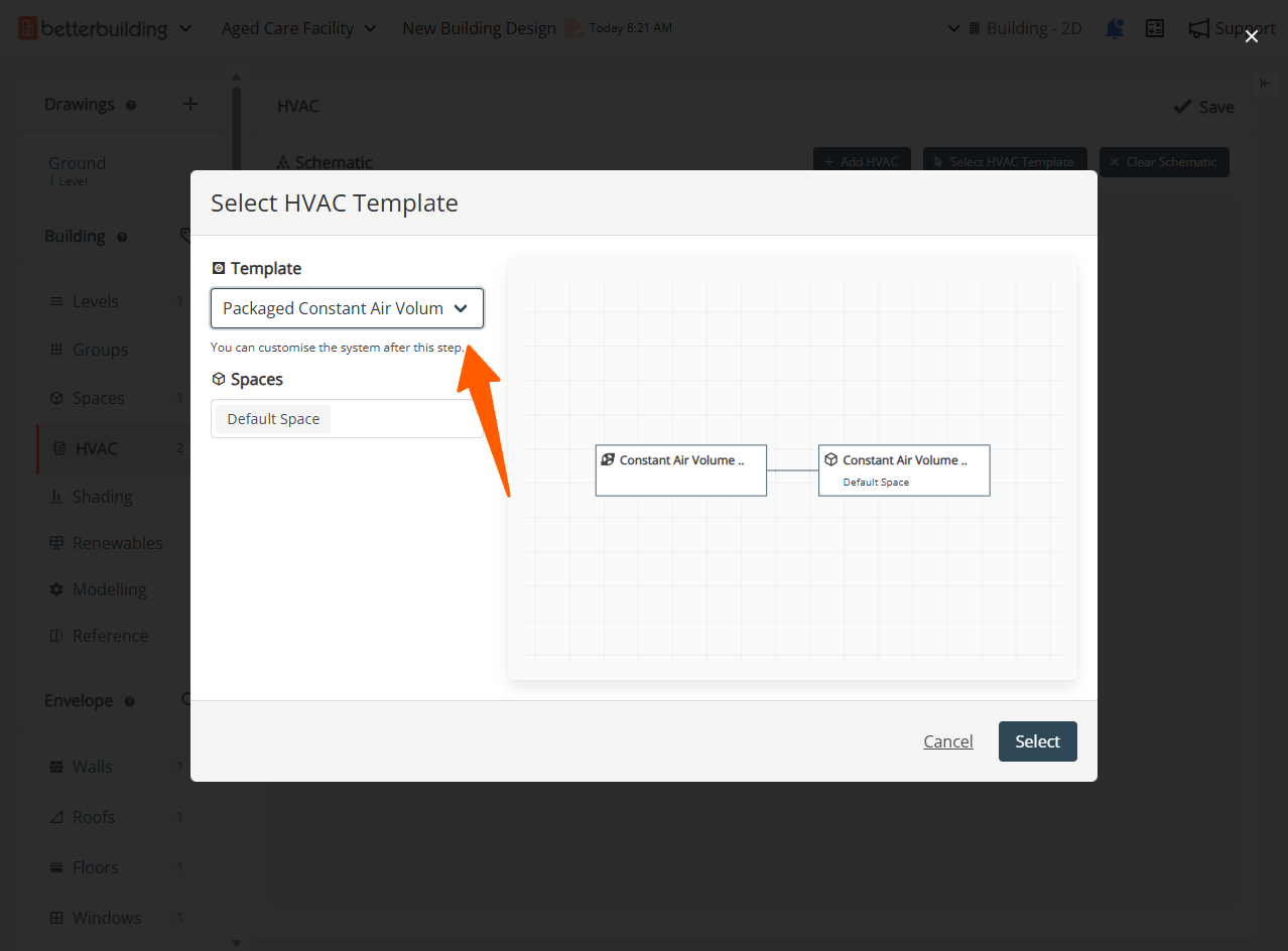 * Space HVAC component - [Constant Air Volume System (Air Cooled)](https://docs.betterbuilding.io/user-guide/2d-building/building/hvac/space-hvac/constant-air-volume-system-air-cooled)