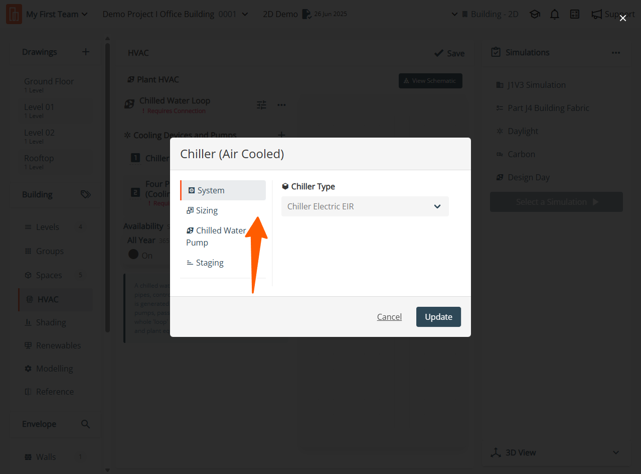 Chiller Type is shown for information only. It is not editable and shows that the Energy Plus object model used is the Chiller Electric EIR object.