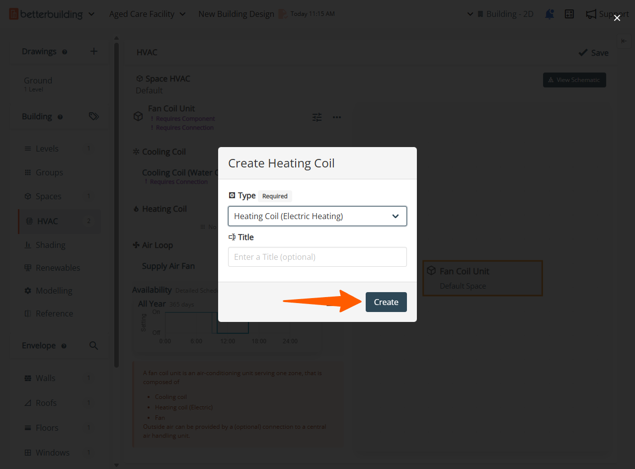 Specify the Coil Efficiency as a user-inputted efficiency in decimal units (not percent), accounting for any loss. For electric coils, this is typically 100%.