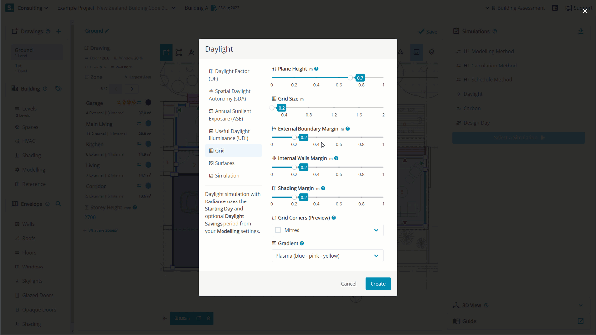 Surface inputs are typically determined by a building code, guideline or rating tool in the early stages of design. Once materials have been determined, specularity, roughness, and reflectivity can be sought from your supplier.