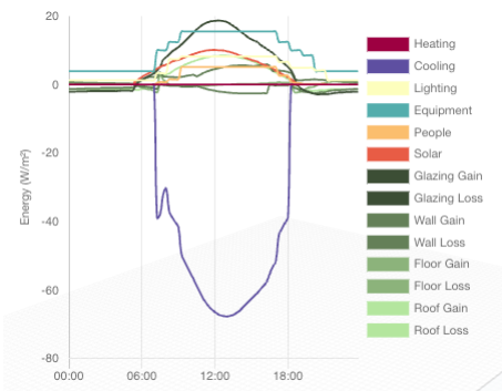 The glazing gain output variable represents the total heat flow to the zone from an exterior window's glazing, frame, and divider when the total heat flow is positive. The total window heat flow is the sum of solar and conductive gain to the zone from the window.