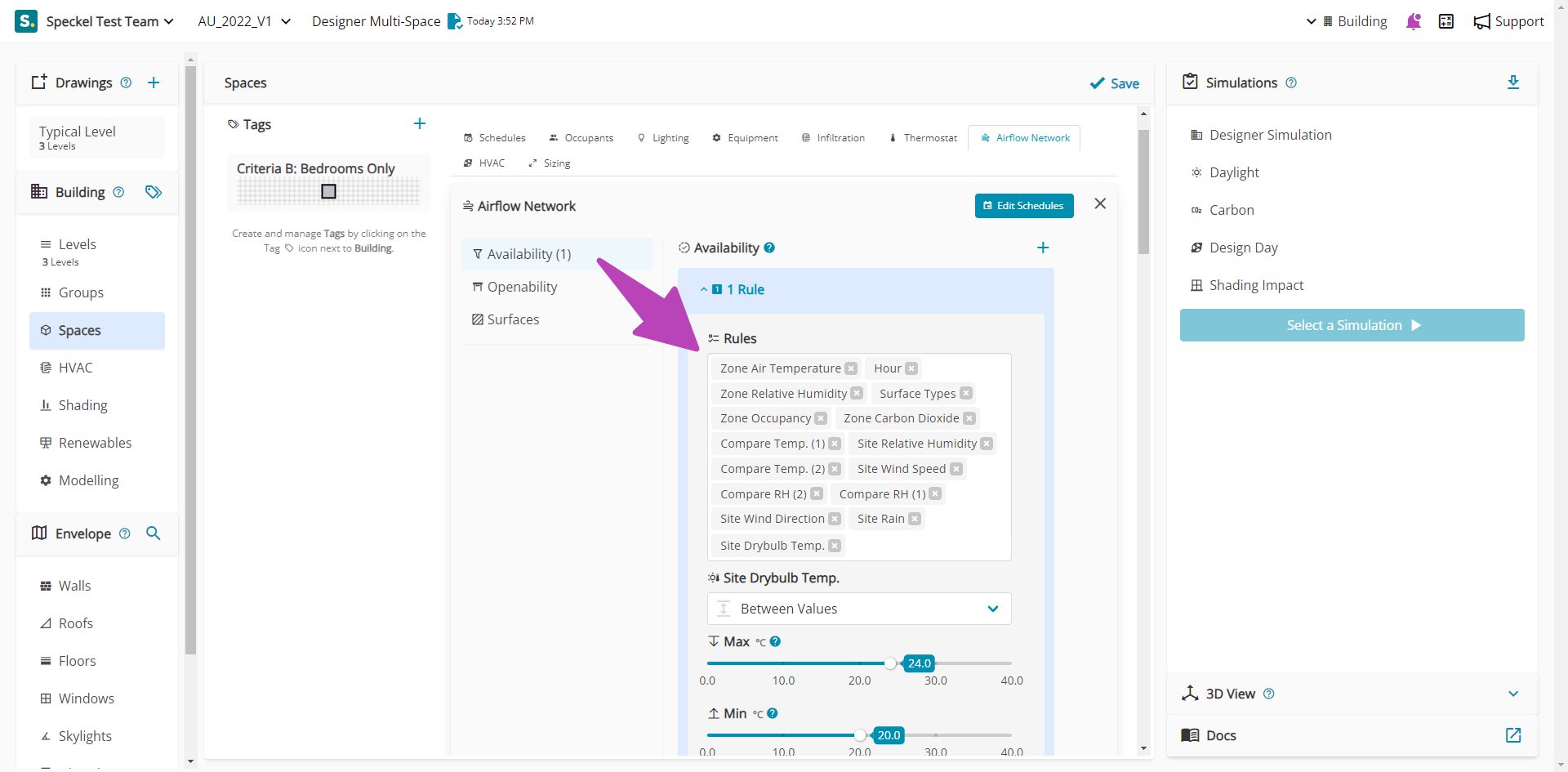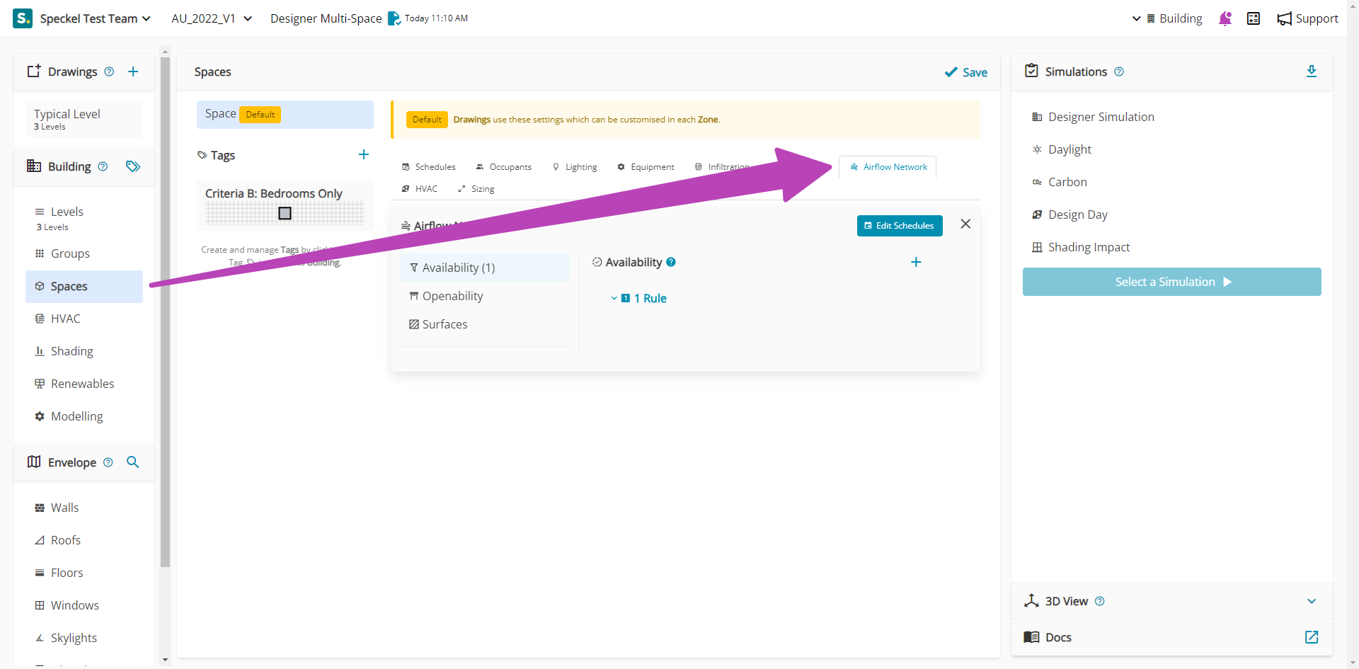 Under the Airflow Network settings, key inputs are available that enable the nomination of your model to be adapted from a standard energy model.