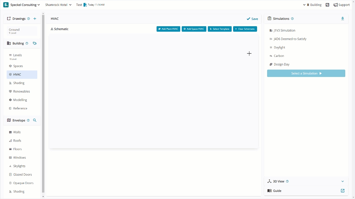On the HVAC Schematic, select 'Select Template'. Next, choose 'Four-pipe Heat Pump System' from the list and complete the other form options as desired.