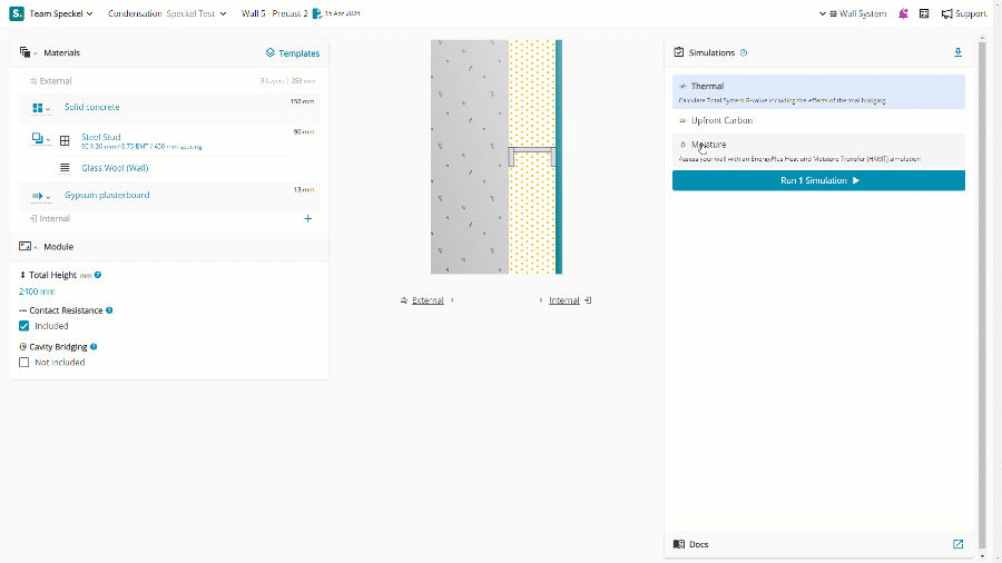 Water Content refers to the amount of water present in a wall system. In the context of hygrothermal modelling, this could be the water in the air (humidity), or the water absorbed or adsorbed by the building materials. Understanding the water content in materials is essential because it influences the thermal properties of materials, can lead to the degradation of materials, and plays a significant role in the development of conditions favourable for biological growths like mould. Kg/m2, kg/m3 and M% can all be assessed.&#x20;
